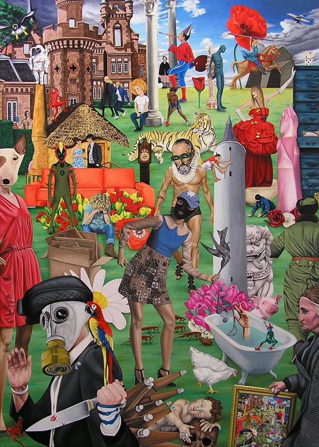 Trained in Philosophy at Universidad Nacional de Educación a Distancia and Fine Arts at Universidad Miguel Hernández, Silvia transforms deep critical thinking into striking visual worlds. Her paintings, collages, and new media pieces pulse with intense color and disconcerting iconography — inviting viewers not just to look, but to question.